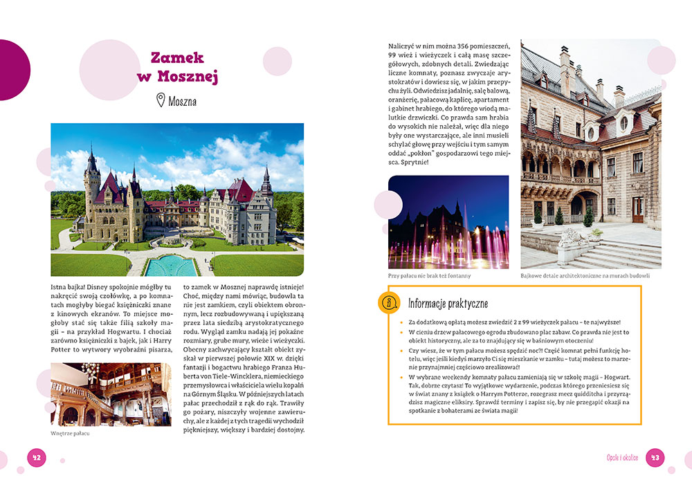 W ksi±¿ce znajdziecie opisy niezwyk³ych miejsc z ró¿nych regionów Polski, mnóstwo ciekawostek, praktyczne wskazówki oraz pomys³y na to, co warto zobaczyæ i jak przygotowaæ siê do wycieczki. S± tu tak¿e podró¿nicze wyzwania i kreatywne zadania, dziêki którym ka¿da wyprawa staje siê jeszcze ciekawsza, a zdobyta wiedza zostaje z czytelnikiem na d³u¿ej.
