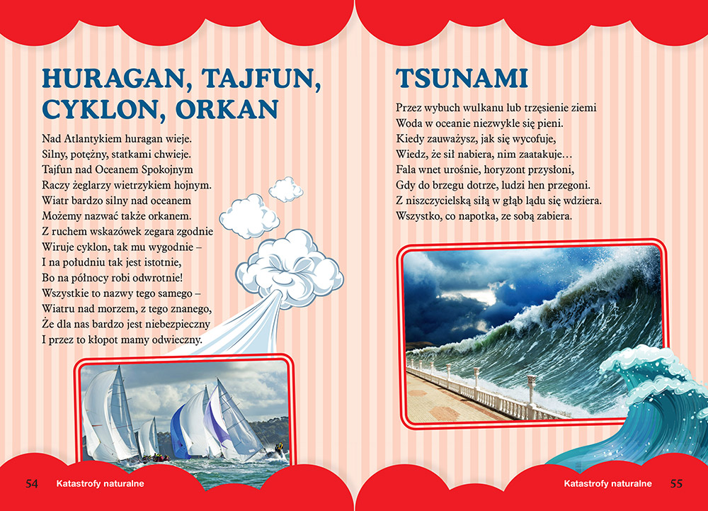 Dziecko dowie się więc, czym jest burza, skąd się bierze śnieg, jak powstaje mgła, dlaczego czasem zdarzają się powodzie czy na czym polega wybuch wulkanu. Książeczka prezentuje też krajobrazy świata wraz z rymowanym opisem, zabierając malucha w fascynującą podróż przez całą Ziemię. Gorąco polecamy wszystkim maluchom ciekawym świata!