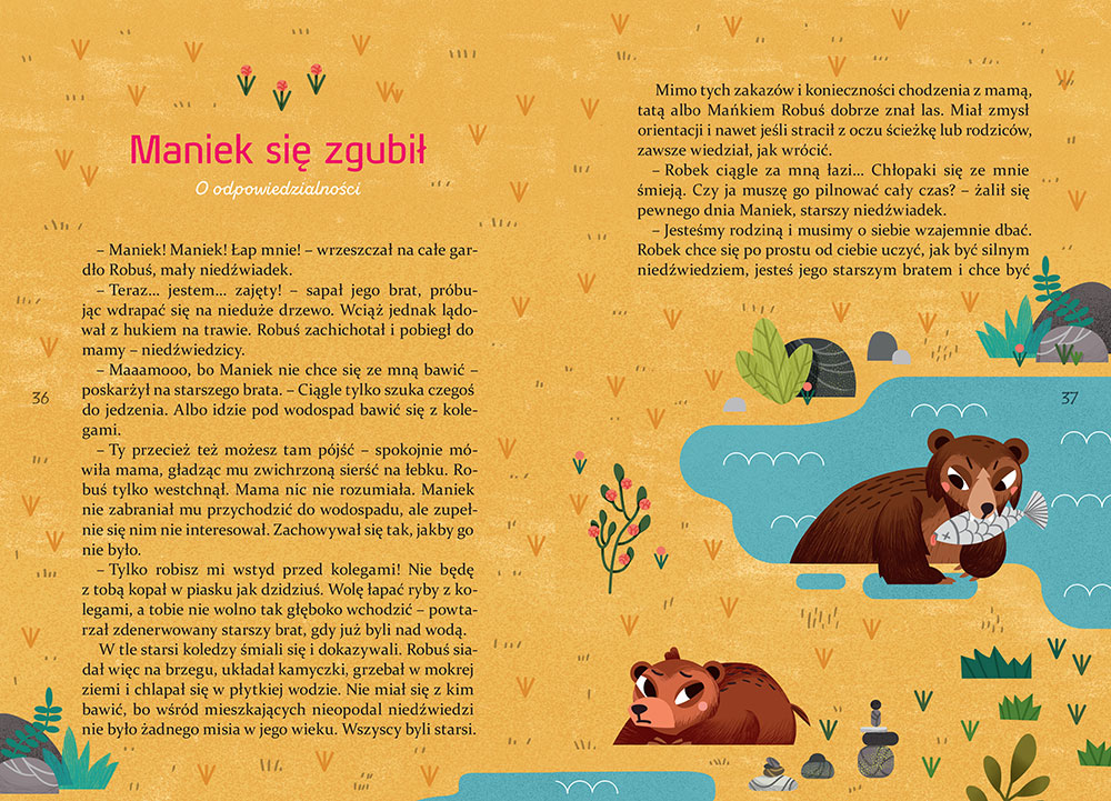 Przedstawiamy zbiór ciepłych i mądrych opowiadań, dzięki którym maluchy dowiedzą się o tym, co w życiu ważne: czym jest wrażliwość, cierpliwość, otwartość na innych, współczucie, empatia, odpowiedzialność za innych, ale też asertywność i świadomość własnej wartości. Z kart książeczki mały czytelnik dowie się, czy Basia bez jednego ząbka może być piratem, skąd się wzięło ogromne ucho Kasi, czego o robieniu innym żartów nauczyły się małe warchlaki, dlaczego Lolek cieszył się mimo przegranej w zawodach - i pozna jeszcze inne ciekawe historie, które mogą stać się wstępem do wielu przemyśleń i rozmów z dzieckiem.