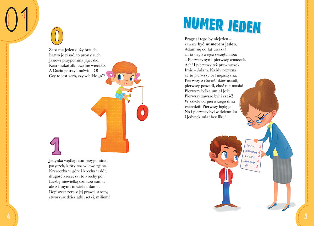 Kolejno przedstawiono liczby do 20, 100, 1000 i coraz wiêksze - a¿ do cyfr olbrzymów! Dodatkowo zosta³y opisane dni tygodnia, miesi±ce, dni w roku, sposób liczenia czasu, wa¿enia - s³owem wszystko, co tylko da siê policzyæ.