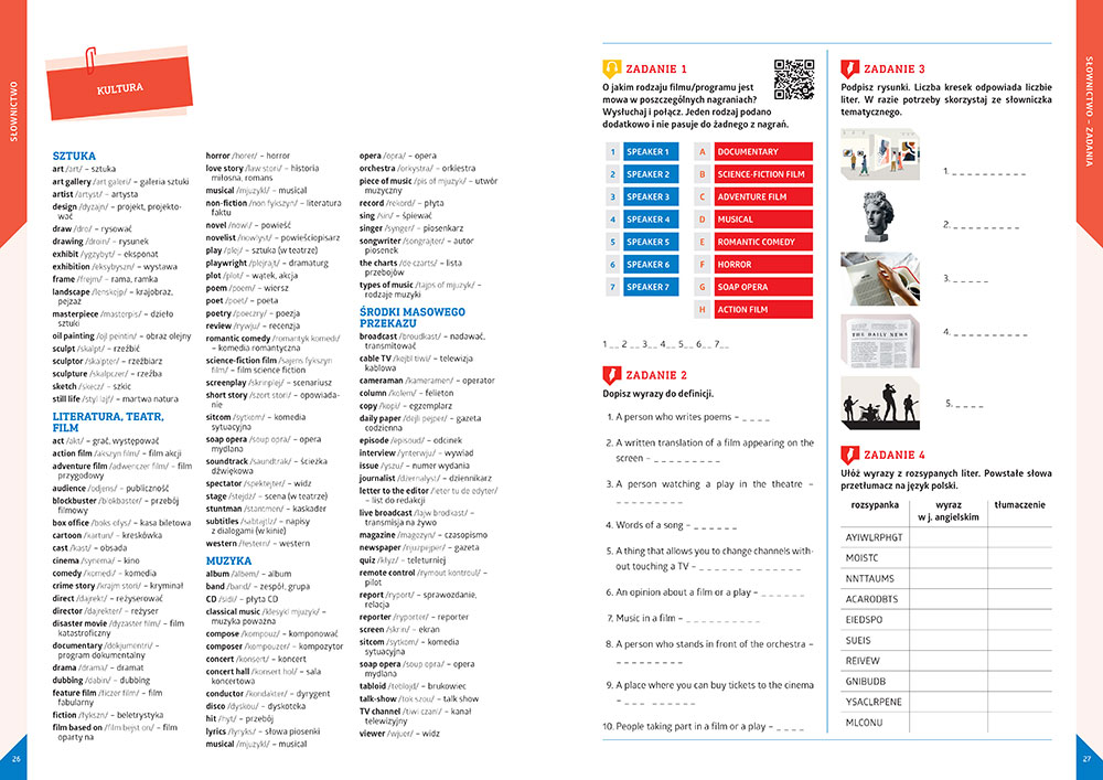 Mnóstwo ćwiczeń, ciekawych tekstów i nagrań pozwoli przygotować się i bez stresu zdać egzamin. Dodatkowo angielskie słówka mają uproszczoną wymowę, a pod kodami QR zostały zamieszczone rozwiązania, odpowiedzi, transkrypcje i przykładowe formy wypowiedzi pisemnych.