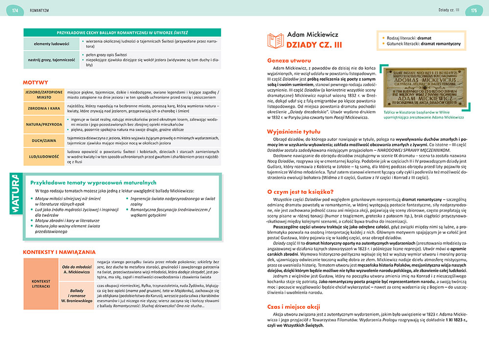 Ksi±¿ka zawiera wszystkie niezbêdne wiadomo¶ci, nie jest prze³adowana zbêdnymi tre¶ciami, a jej jêzyk jest zwiêz³y i zrozumia³y. W repetytorium uczeñ znajdzie omówienia wszystkich epok literackich oraz streszczenia i omówienia lektur szkolnych z poziomu podstawowego. Repetytorium zawiera te¿ materia³y, które pomog± w tworzeniu wypowiedzi pisemnych - motywy do wypracowañ maturalnych. Ksi±¿ka przybli¿y formu³ê egzaminu pisemnego z jêzyka polskiego. Ksi±¿kê uzupe³nia przyk³adowy arkusz maturalny z jêzyka polskiego wraz z kluczem (dostêpne online). Zrozumienie zasad przyznawania punktów za udzielane odpowiedzi jest bardzo cenn± umiejêtno¶ci±! Kolorowa, czytelna i przejrzysta szata graficzna repetytorium u³atwi naukê.