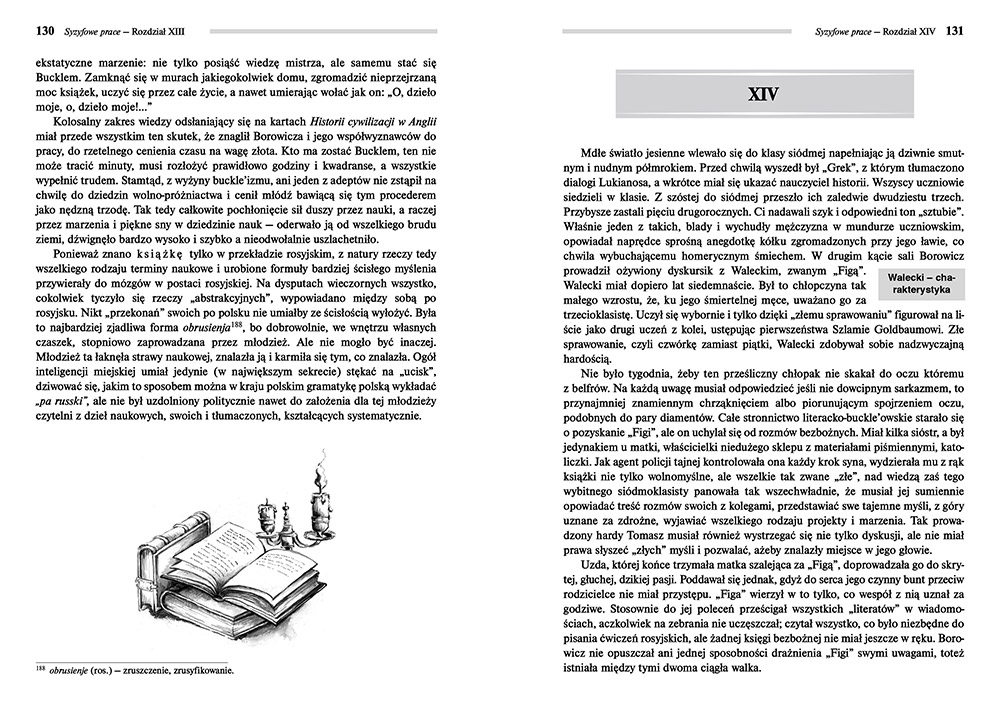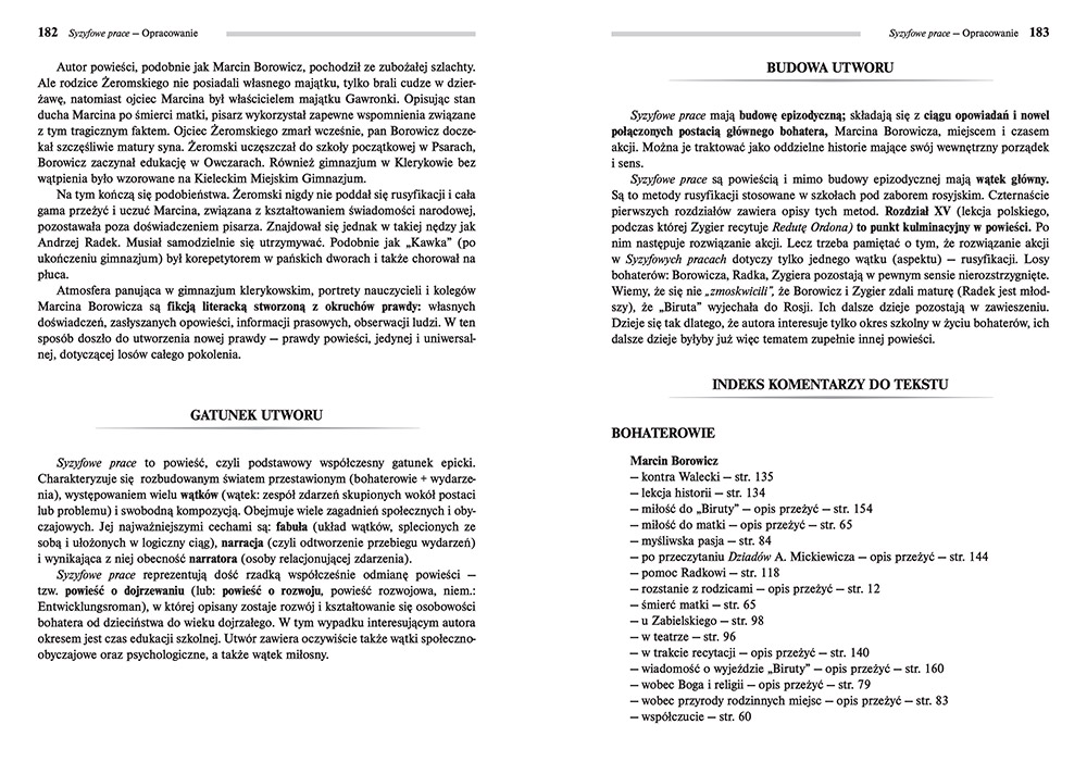 "Syzyfowe prace" to trudna lektura, którą jednak warto przeczytać. Poznajemy historię ucznia Marcina Borowicza, obraz szkoły w rosyjskim Królestwie Polskim i walkę polskiej młodzieży z rusyfikacją. Książka opisuje ducha narodu, którego żaden zaborca nie mógł stłamsić.