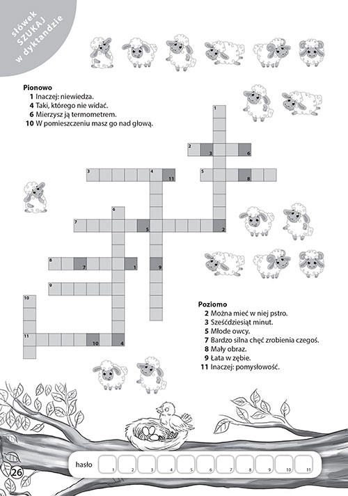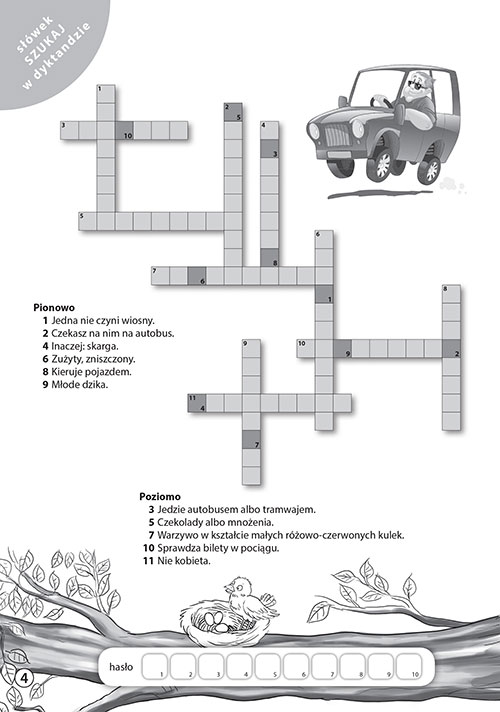 Ksi±¿eczka zawiera teksty do uzupe³niania, pe³ne humoru uprzyjemniaj±cego pracê. Towarzysz± im krzy¿ówki, oparte o s³ownictwo z dyktand, dziêki którym uczeñ mo¿e odpocz±æ i zrelaksowaæ siê, a jednocze¶nie powtórzyæ zapamiêtane s³ówka. S³owniczek pozwala sprawdziæ poprawno¶æ rozwi±zañ, a zabawne ilustracje zachêcaj± do korzystania z ksi±¿ki.